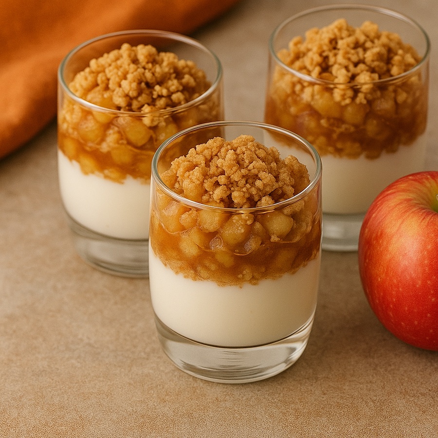 This is a fall-inspired treat with layers that look gorgeous in clear glasses. It gives you the flavor of apple pie without turning on the oven—and it’s slightly healthier, too.