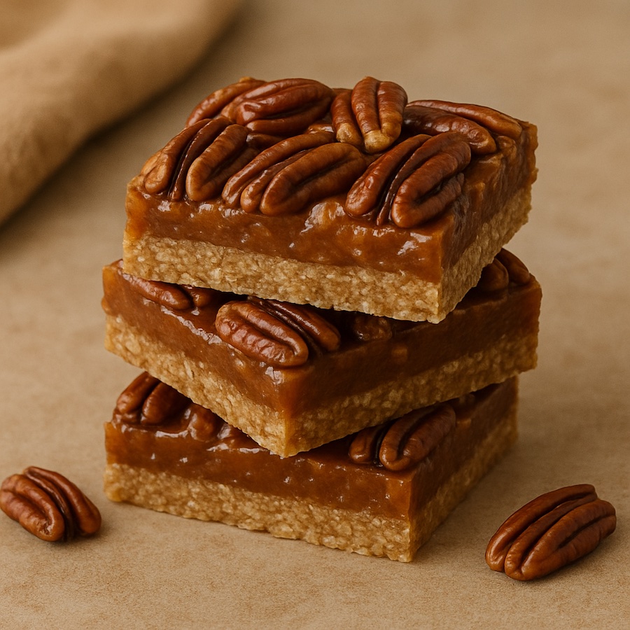 All the rich, caramel-pecan flavor of pecan pie with none of the baking. These bars set quickly in the fridge and slice beautifully.