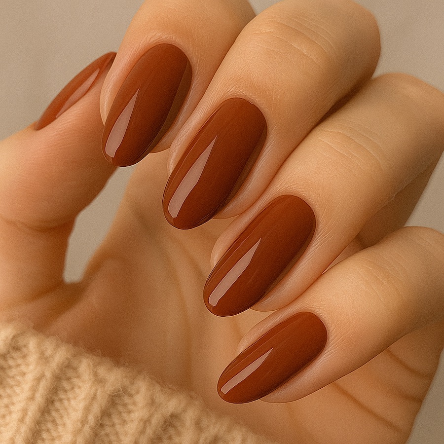 Brown nails are having their golden moment, and burnt sienna leads the way. This warm brown has reddish undertones that feel luxurious and timeless. It’s a color that feels like curling up by the fireplace with a good book and a cup of cocoa.